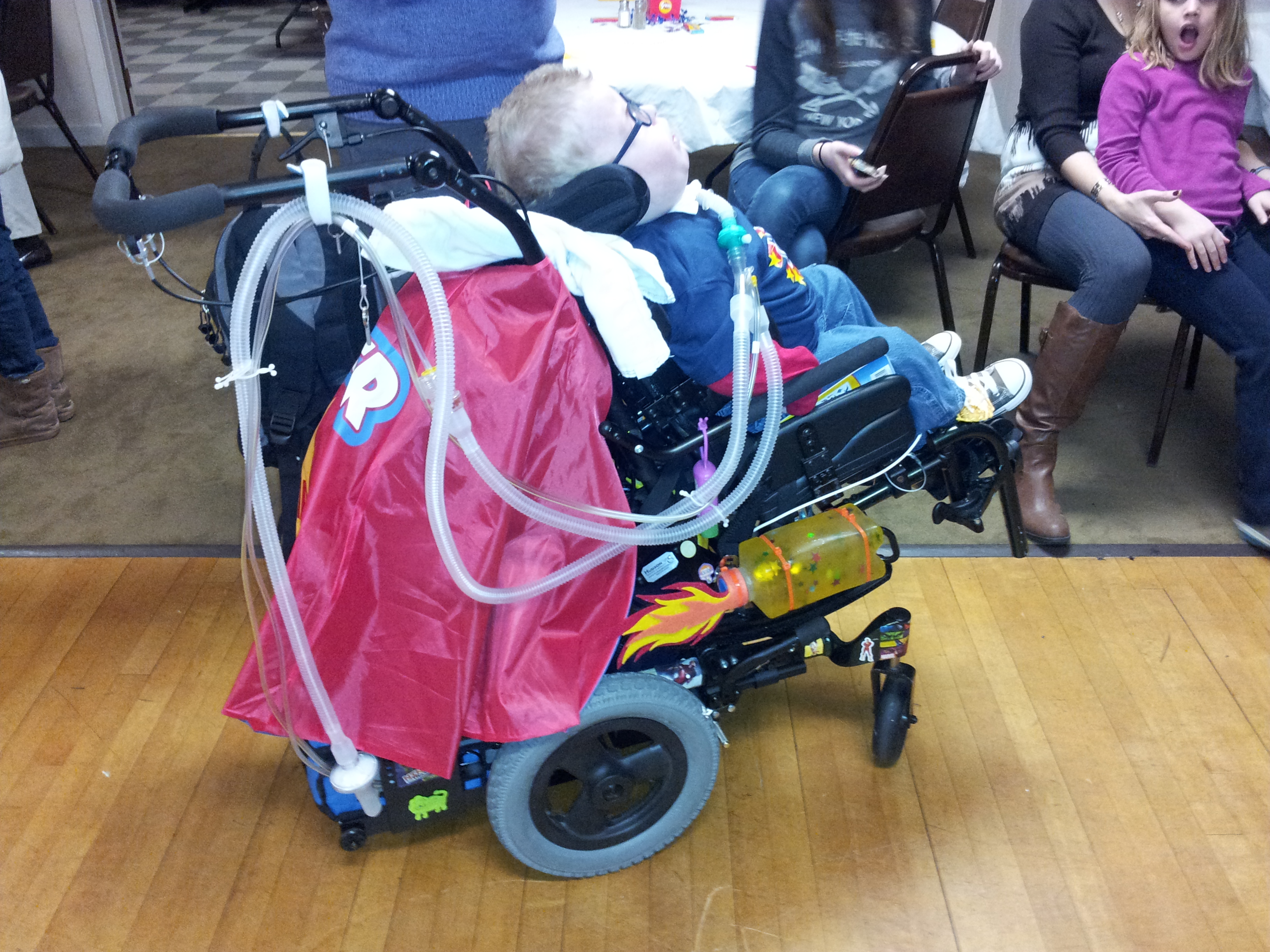 At five years old, Liam goes to school, has friends, gets to see the Boston Red Sox in person, loves hockey, enjoys music, being outside, and his IPad. And that just a few examples of what he HAS been able to do. Liam and his parents, my nephew Eric and his wife Karin, have not been without some very difficult times though. Negotiating with doctors, home nursing providers, insurance companies, school departments — a lesser couple would have folded up shop a long time ago. Eric chronicles their journey in his blog: Pressure Support, My Boy’s Ventilator Really Blows; you should take a look!