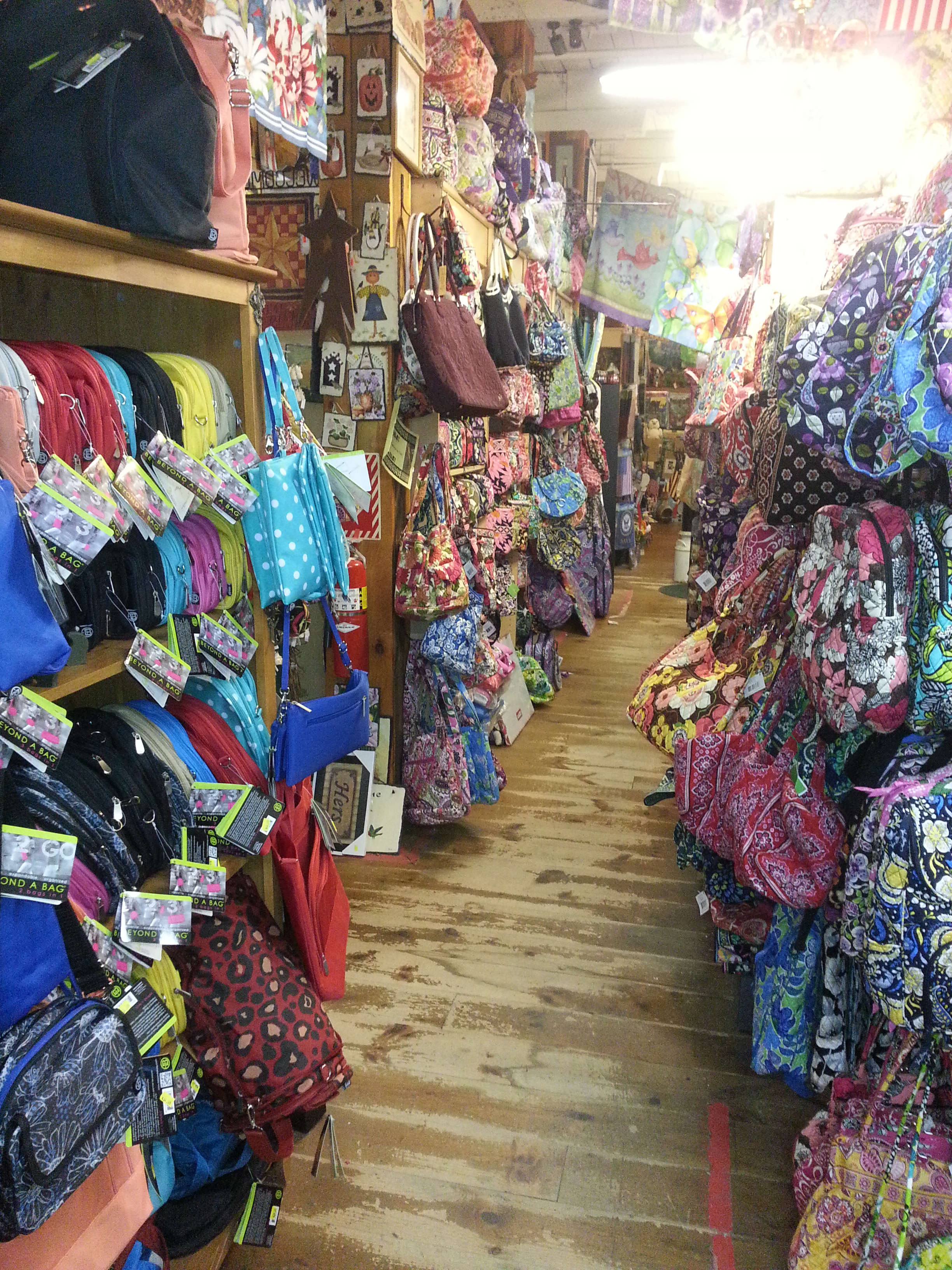 Last Summer my husband I on went on a quick getaway to Sturbridge, MA. We stopped on the main drag at this great shop. Once in the door there was hardly room to walk from one end to the other. Immediately upon entering there was a Vera Bradley display with discontinued styles and patterns “on sale”; more items than any place I’ve seen VB products, ever.