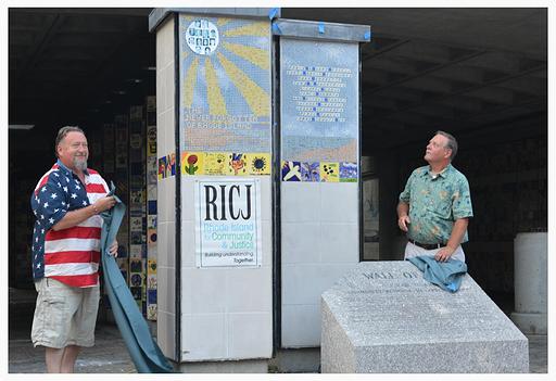 One of the most stunning tributes in Rhode Island to the events of that day is the Wall of Hope. Any Rhode Islander who wanted to add a tile to the wall had the chance to. It started with groups of school children and quickly mushroomed to include all kinds of groups: social, faith-based, schools, businesses.