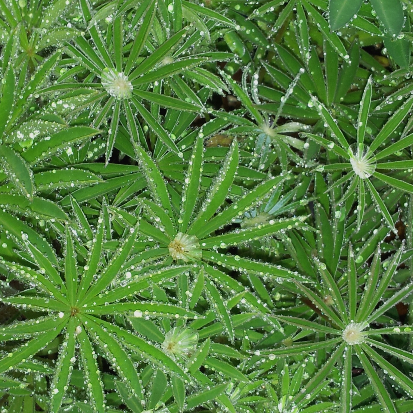 I’m going to work on posting more over the next several weeks. Have been out of the groove for months, this is easy way to post. This picture for the Weekly Photo Challenge was taken in my yard before these plants made their way into the ground. I’m amazed at the shots my little phone can get and love this one! To me it looked as if little diamonds had found a home on the leaves of the lupines.
